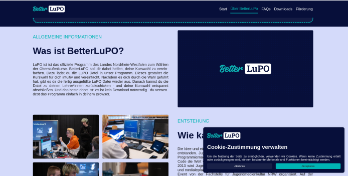 BetterLuPO is an addon to the German school software LuPO, which severly improves on the original version. LuPO is mandatory for students to choose their courses during and before finals. After presenting a proof-of-concept, we were asked by the City of Cologne to continue work on the software. BetterLuPO will be released in 2025 and used in Schools all throughout NRW