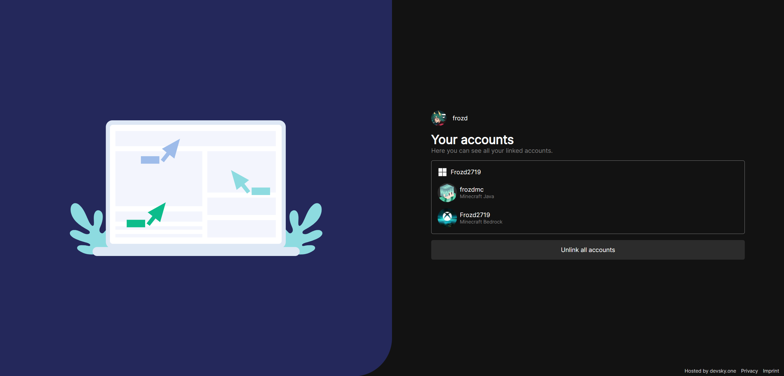 Ich habe das frontend für ein Projekt entworfen, welches Discord und Minecraft accoutns verknüpft, um die identität der Nutzer zu bestimmen.