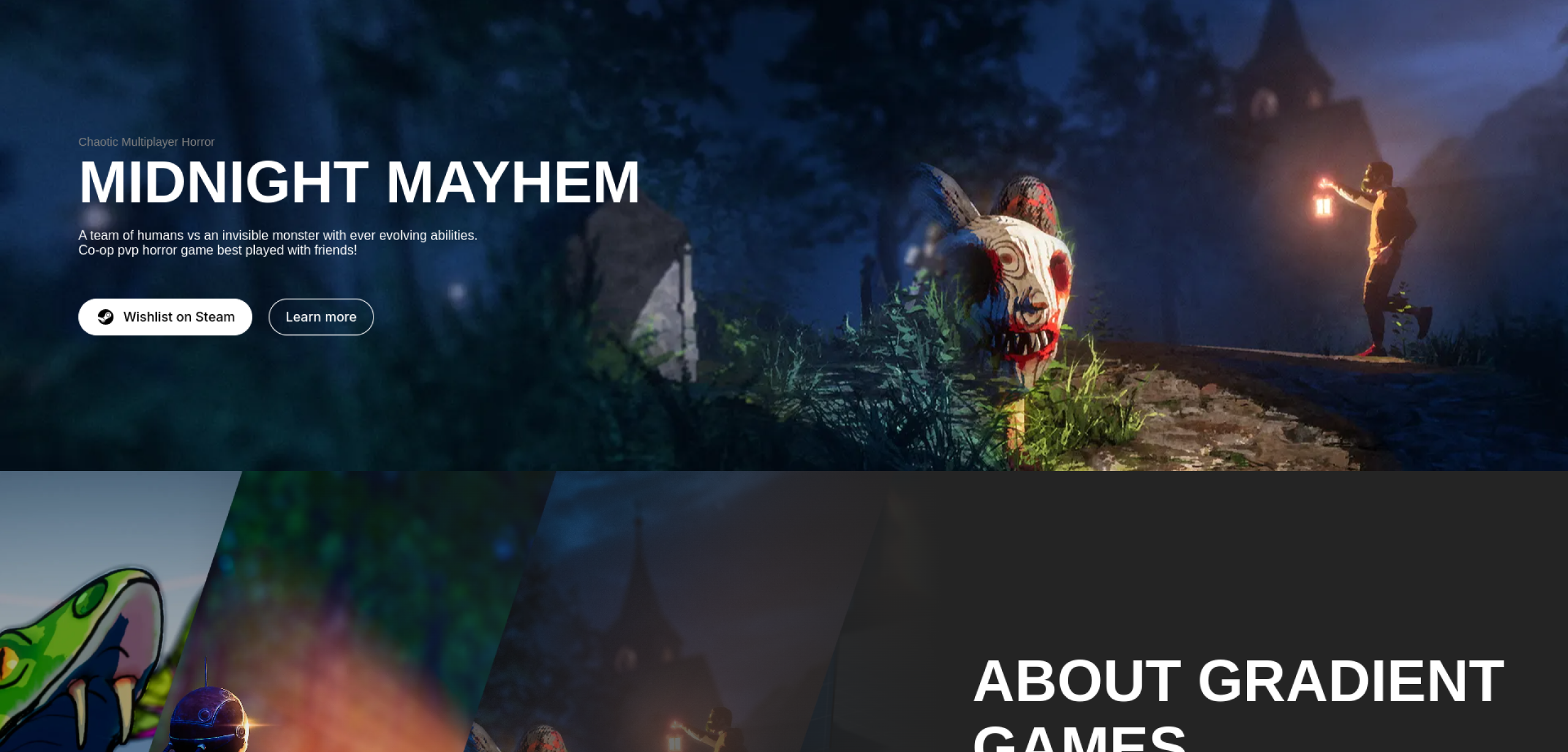 Eine Webseite für einen Indie Spieleentwickler, welche mehrere Projekte zur Schau stellt.